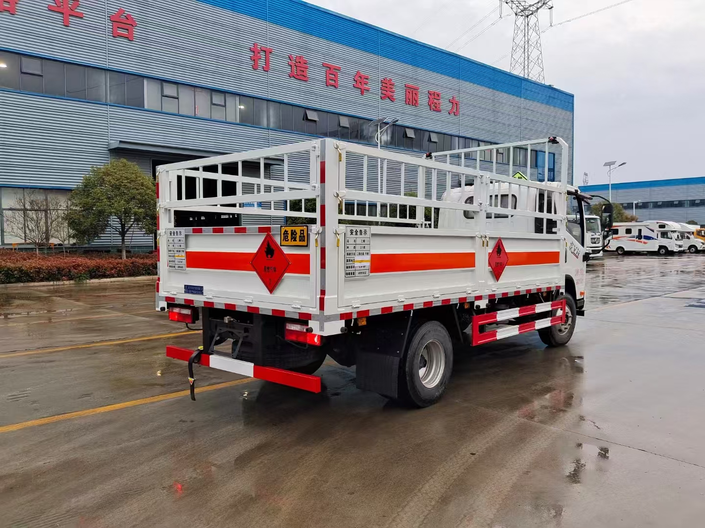 上裝配置 外板采用1.2MM厚冷軋板,內(nèi)襯為矩形管骨架牢靠穩(wěn)定,底板3mm板材,上鋪有靜電膠皮,有靜電帶、滅火器、防火罩。整車國標(biāo)反光標(biāo)示及警告標(biāo)。可選裝無柵欄,選擇車型顏色。