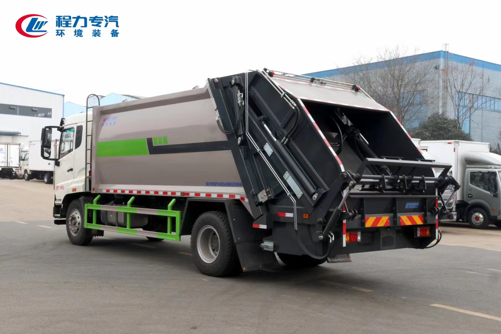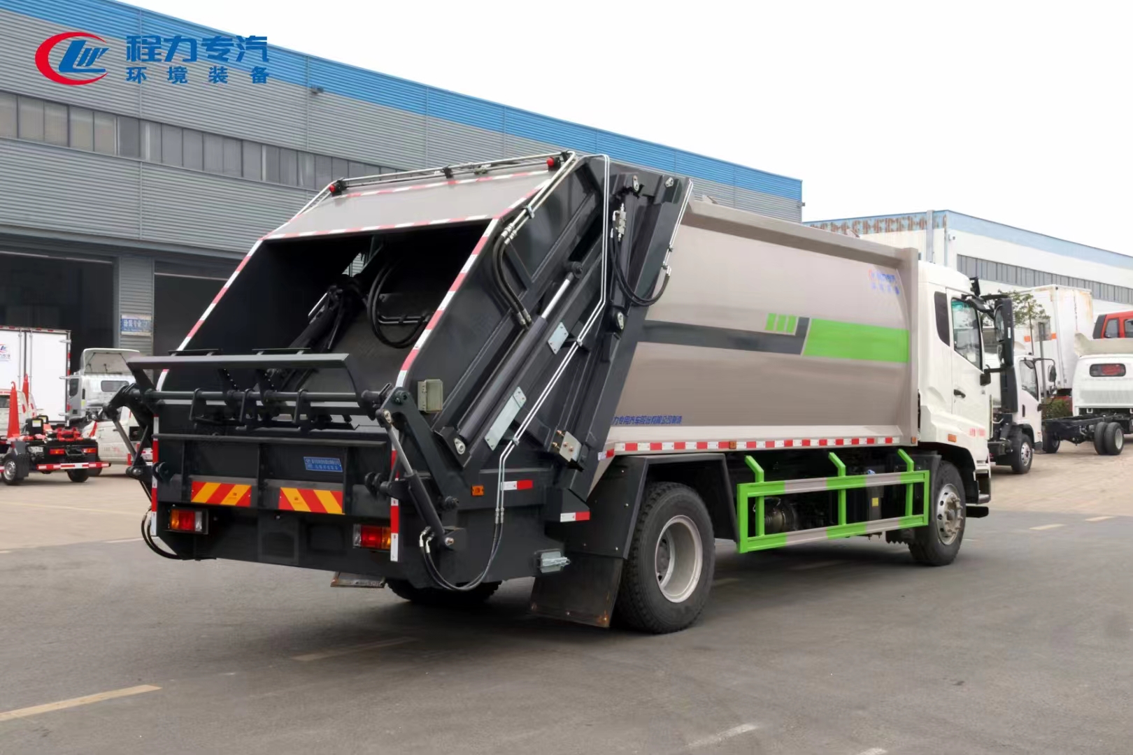 | 上裝配置 | 上裝為弧形箱體結(jié)構(gòu),采用Q345(局部采用T710)高強(qiáng)度板制作。有效容積15-18立方,采用中梅大通徑五聯(lián)手氣一體多路閥,全系標(biāo)配背壓閥(增加雙向壓縮比),合資鐵殼液壓齒輪泵,嘉善取力器,中梅手氣一體多路閥,恒力油缸(質(zhì)保兩年),加強(qiáng)型掛捅后翻轉(zhuǎn)機(jī)構(gòu)(可選裝三角斗、全密封斗、擺臂等翻轉(zhuǎn)機(jī)構(gòu)),外置滑板缸結(jié)構(gòu)設(shè)計(jì),石墨烯尼龍滑塊,長(zhǎng)沙福力CAN總線控制系統(tǒng),尾部帶有硅膠控制面板,標(biāo)配無線遙控,帶光電感應(yīng)保護(hù)裝置,標(biāo)配后污水箱,(中聯(lián)樣式雙排污口),可加裝側(cè)邊污水箱。加裝氣動(dòng)密封蓋。 | ||