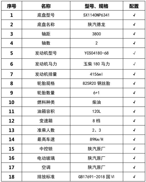 1,僅采用軸距3800mm;2、該車廣泛應(yīng)用于修筑高等級(jí)公路瀝青路面灑布作業(yè),主要專用裝置瀝青罐體,瀝青噴灑系統(tǒng),罐體總?cè)萘?7.52立方米,有效容積:7.17立方米,罐體外形尺寸(長(zhǎng)×寬×高)(mm):3600×2100×1550,介質(zhì):液態(tài)瀝青,密度:900千克/立方米;罐體保溫層厚度為50mm;3、側(cè)防護(hù)材料采用鋁合金,螺栓連接;后防護(hù)由專用裝置代替,下邊緣離地高400mm;4、ABS系統(tǒng)生產(chǎn)廠家:西安正昌電子股份有限公司,型號(hào):ZQFB-V;后部安裝工作燈,僅在夜間駐車狀態(tài)下起照明作用,行駛過程中不可點(diǎn)亮。隨底盤選裝駕駛室;選裝駕駛室前擋風(fēng)玻璃處增加攝像頭布置外觀。