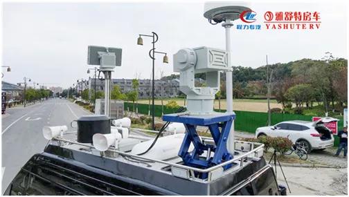 頂部:雷達偵測設備,電子干擾及無人機誘騙一體,無線電檢測設備,光電跟蹤設備