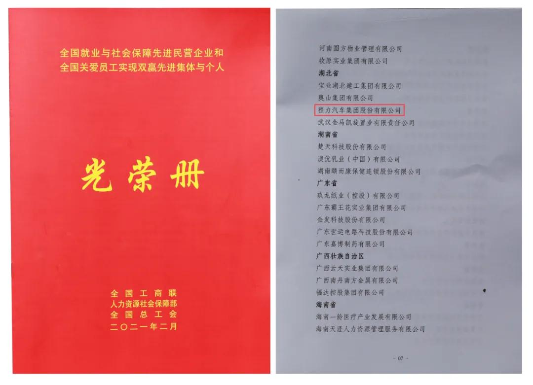 3月2日,程力汽車集團(tuán)股份有限公司收到國家人力資源和社會(huì)保障部、中華全國工商業(yè)聯(lián)合會(huì)、中華全國總工會(huì)聯(lián)合頒發(fā)的“全國就業(yè)與社會(huì)保障先進(jìn)民營企業(yè)”榮譽(yù)證書及牌匾,這是程力汽車集團(tuán)股份有限公司在2021年初被授予的開門紅全國性殊榮,也是程力集團(tuán)繼2020年連續(xù)三次受到全國性榮譽(yù)表彰。