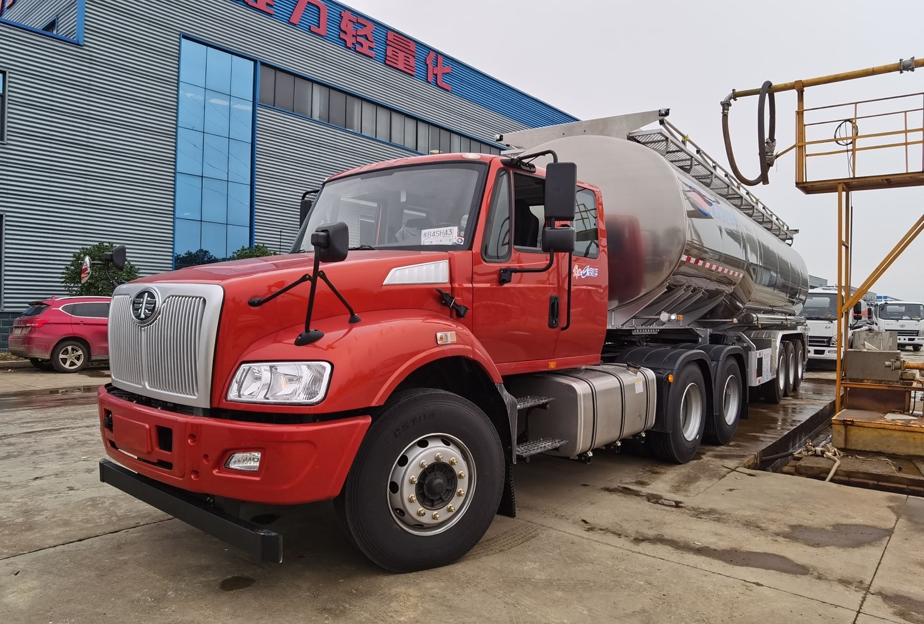 | 上裝配置 | 罐體有效容積:42立方,5182鋁合金板材,罐體6mm,封頭6mm,隔板5mm厚,兩個六爪快開罐口,壹個氣動海底閥,單倉帶后尾部左右三寸的自流口,3軸13噸廣東富華橋,兩軸帶ABS,12條12.00R22.5真空胎配普通鋼圈,16噸剎車片,50牽引銷,28噸單動支腿,其他按廠標(biāo)配,廠家嚴(yán)格按照公告圖片制作,提供整車證及上戶發(fā)票。 | ||