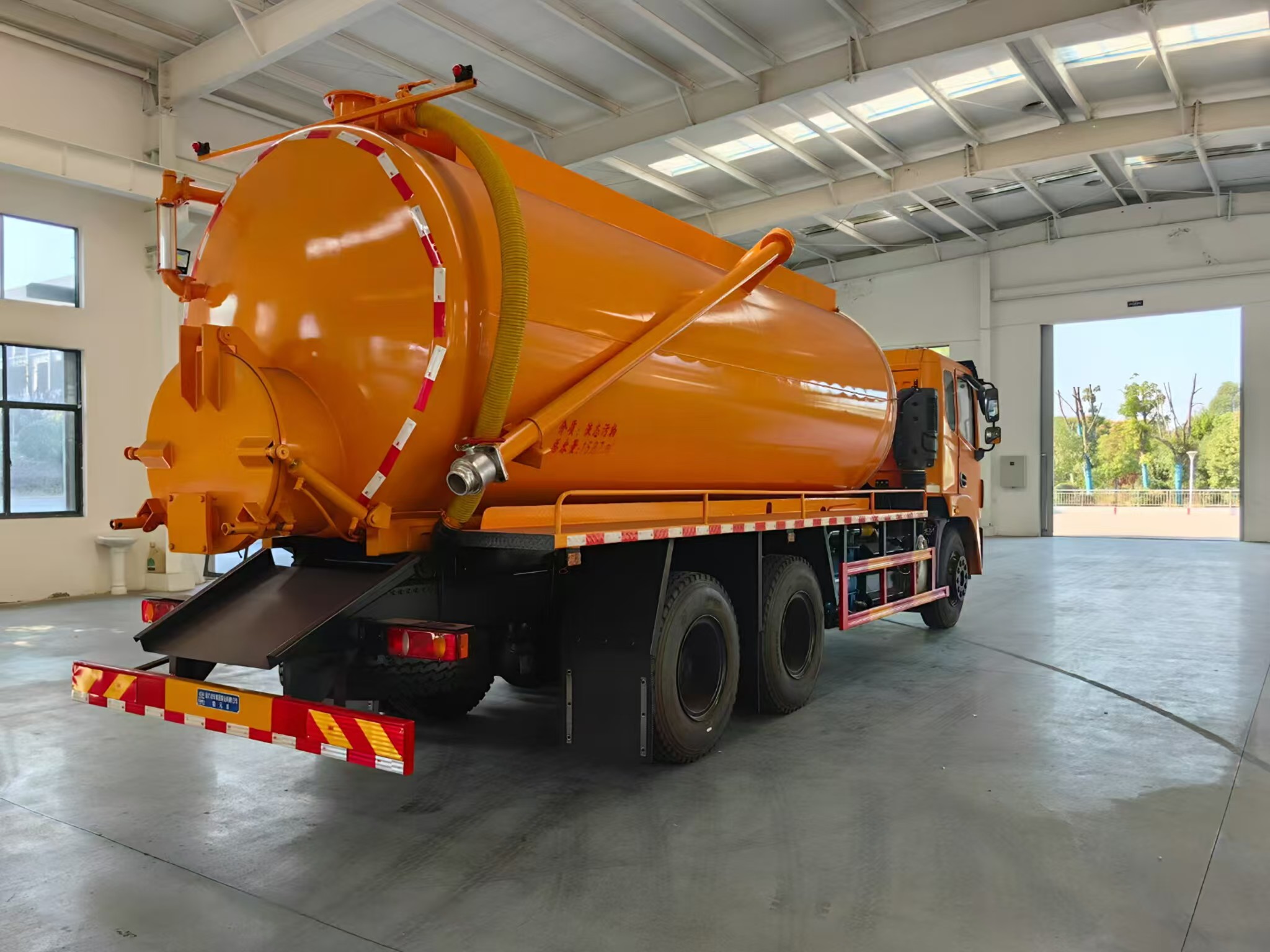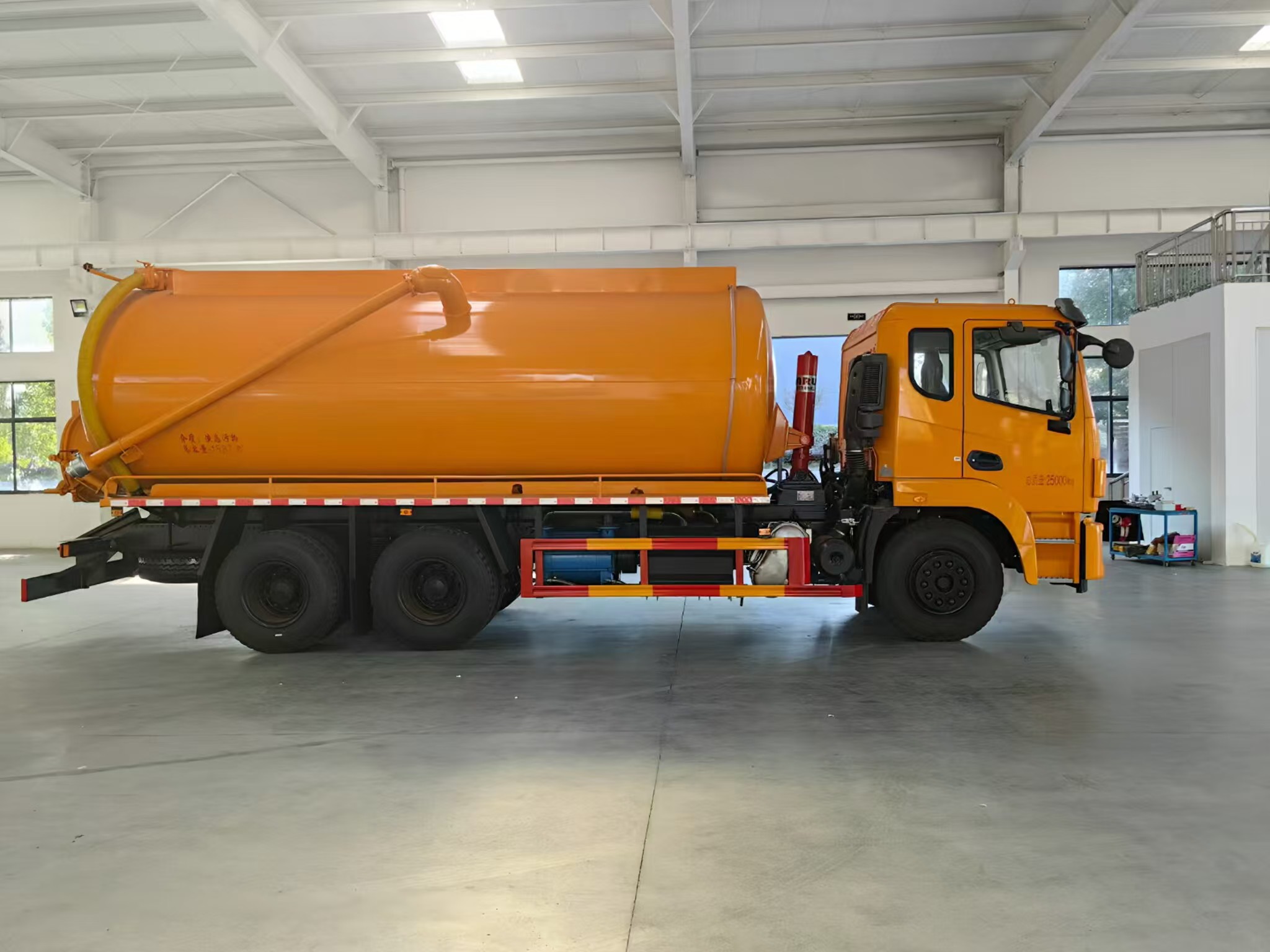 | 上裝配置 | 罐體容積約20方,8m碳鋼板材,選裝安裝山東204水環(huán)泵配,后封頭液壓打開。后封頭上一個(gè)800水泥蓋放污,可液壓開啟,后封頭一個(gè)6寸出口,一個(gè)100寸進(jìn)口直通罐頂,加強(qiáng)型車架,自卸車設(shè)計(jì),罐體帶舉升功能(前頂自卸),罐體尾部箭頭燈,帶一個(gè)視污窗口。帶8米吸污管。其余廠內(nèi)標(biāo)配! | ||