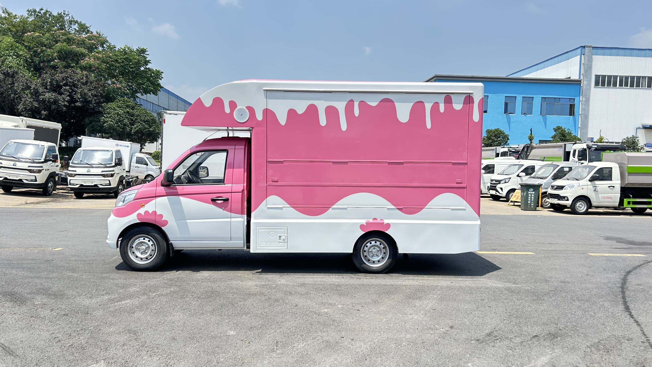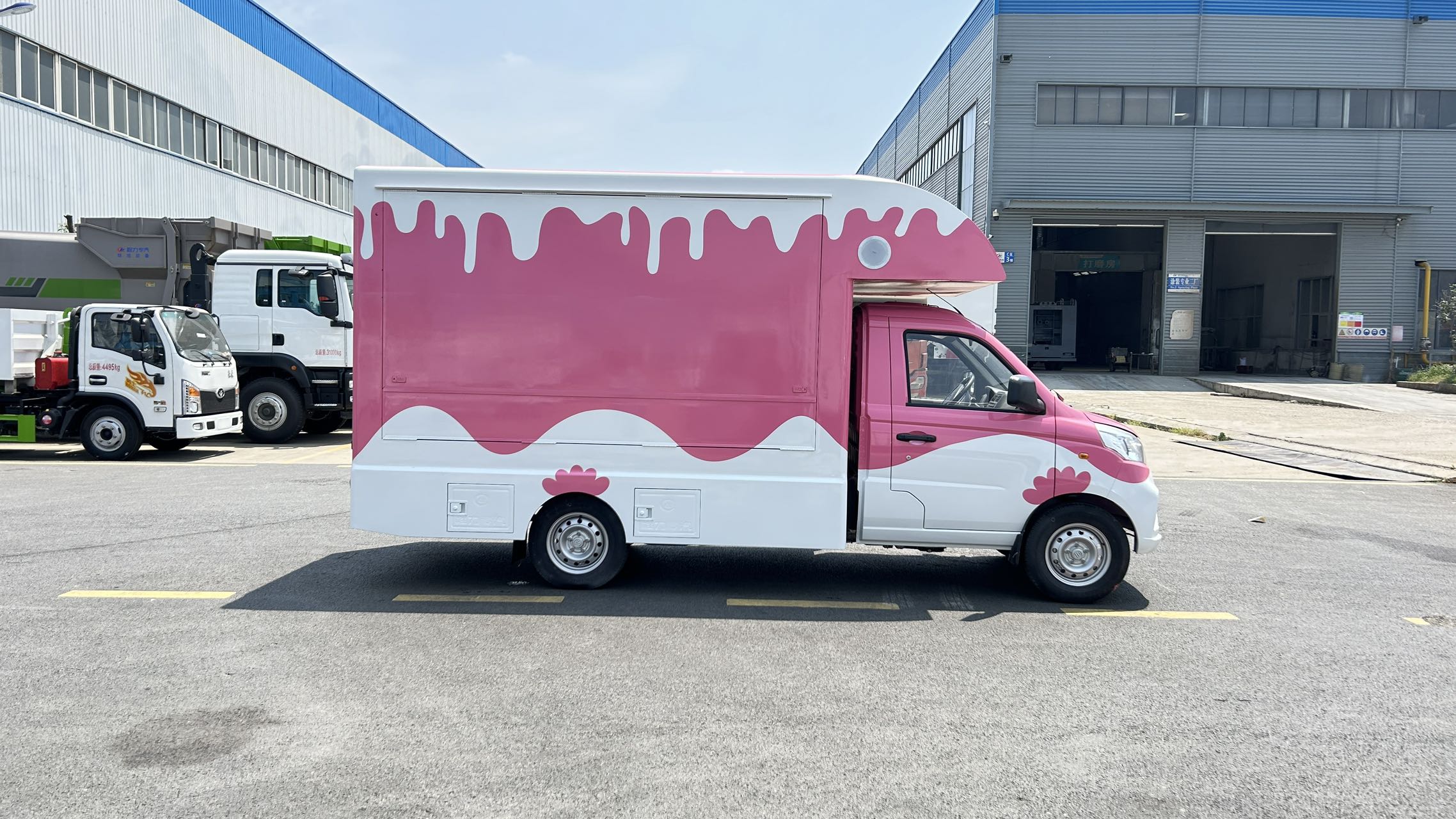 | 上裝配置 | 1,箱體材質(zhì):矩形方管骨架,冷板蒙皮結(jié)構(gòu),翻板采用內(nèi)外彩鋼板,中間高性能保溫板,側(cè)板整體復(fù)合,輕量化,保溫隔熱。整體車身顏色為白色,可定制車身各種顏色彩條拉花,或各種噴涂樣式,(選裝內(nèi)部不銹鋼飾面板) 2,箱體結(jié)構(gòu): (1)箱體鴨嘴額頭設(shè)計(jì),帶儲物功能。 (2)箱體兩側(cè)上翻板,帶下翻吧臺。 (3)地板為防滑鋁花紋板,箱體裙邊包圍,帶檢修艙門,工具柜。 | ||